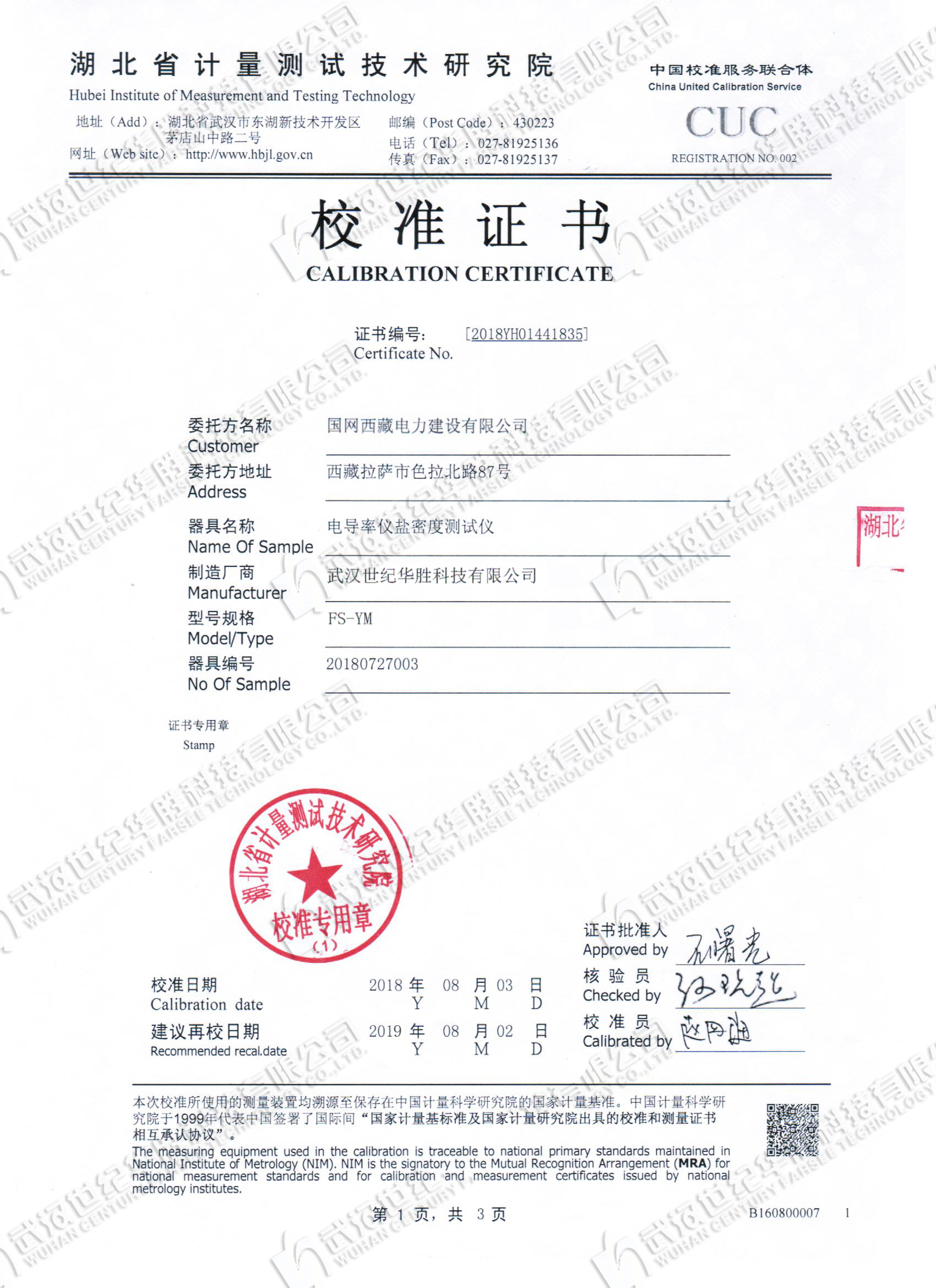 ? ? ? 2.?設(shè)備3年免費檢定或校準。