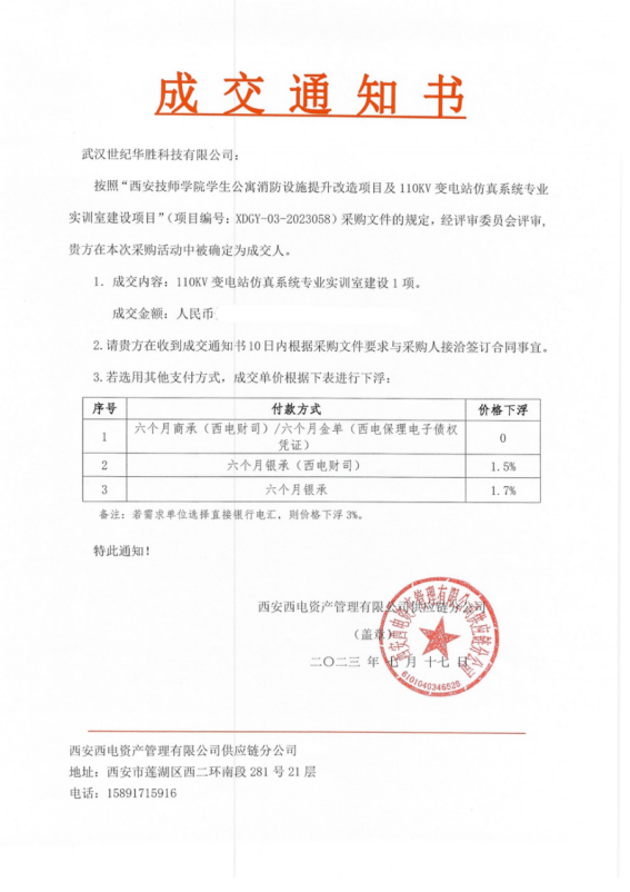 熱烈慶祝武漢世紀(jì)華勝科技有限公司在西安技師學(xué)院學(xué)生公寓消防設(shè)施提升改造項(xiàng)目及110KV變電站仿真系統(tǒng)專(zhuān)業(yè)實(shí)訓(xùn)室建設(shè)項(xiàng)目圓滿(mǎn)結(jié)束